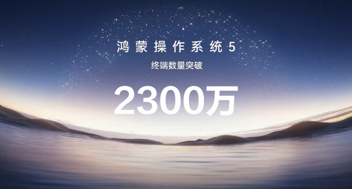 余承东宣布,鸿蒙5终端设备数量突破2300万,是智能终端发展史上最快的操作系统。